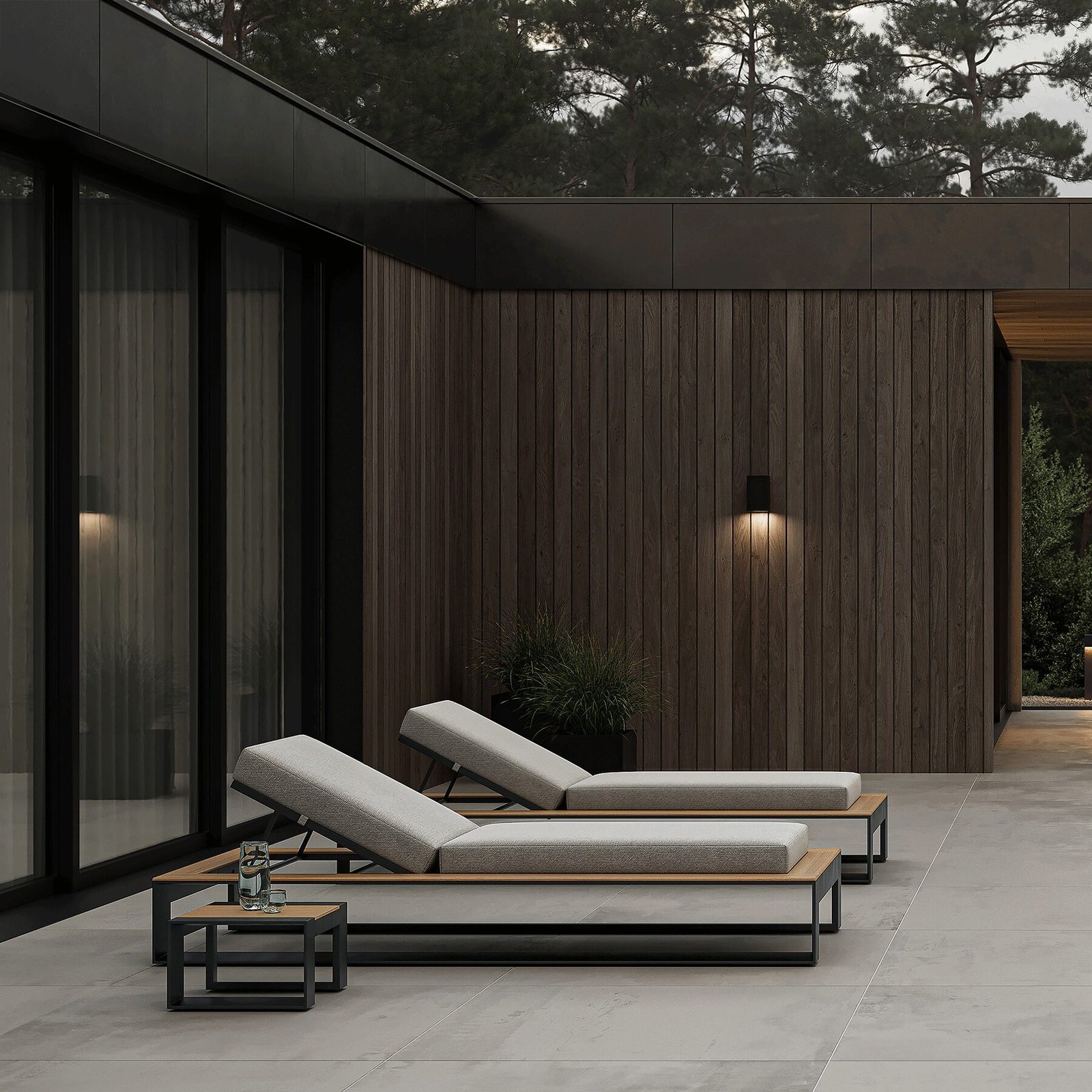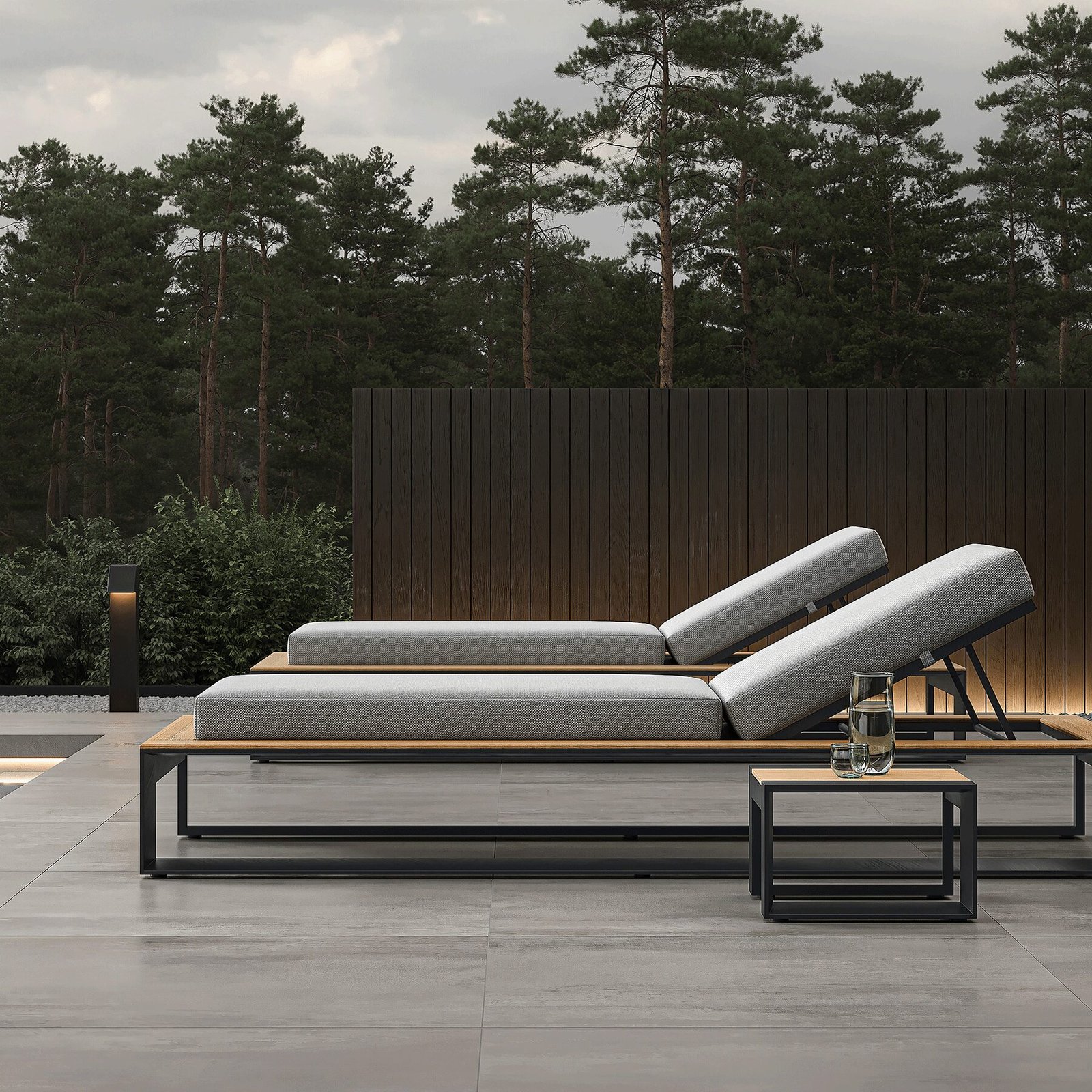 This N5 Collection Side Table features a sleek dark grey powder coated aluminium frame complemented by warm teak detailing. The juxtaposition of materials creates a striking visual contrast, blending industrial appeal with organic warmth. The table’s minimalist silhouette is defined by clean lines and an contemporary design that accentuates the natural beauty of the teak wood. The natural untreated teak’s golden-brown tones and distinctive grain patterns bring a touch of nature’s artistry to this piece.